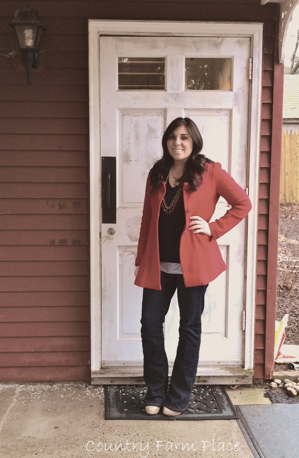 Heading into the shower, but had to stop for a photo op in front of the house.