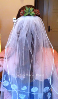 The day of the wedding, JJ, DD, and I made these hair clips. The small ones were worn by the flower girls; and the large one was worn by the blushing bride.
